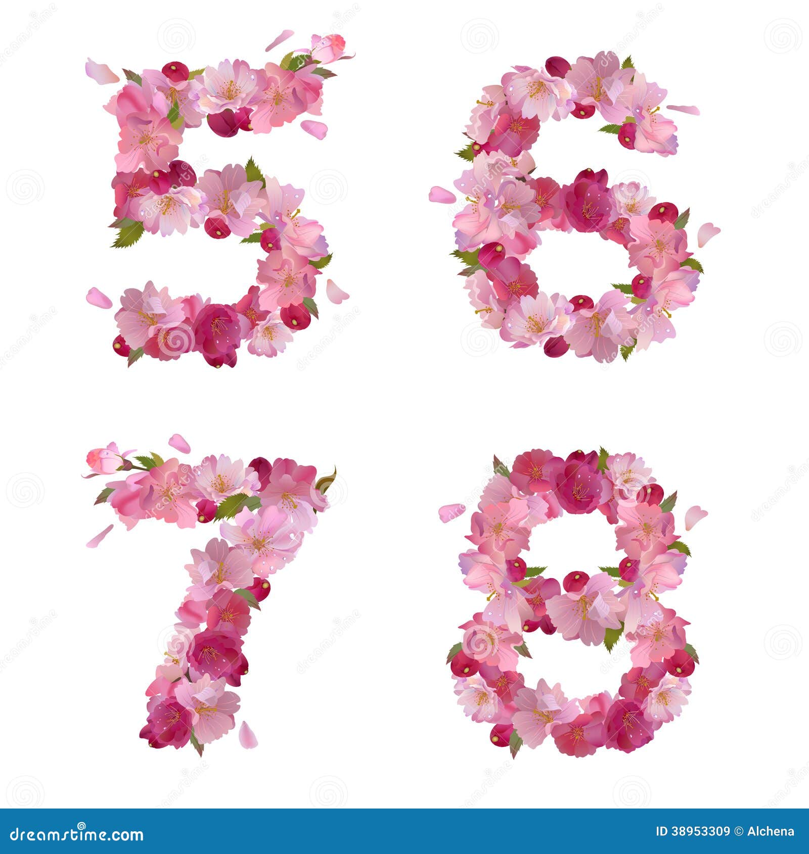 Spring Font From Cherry Flowers Figures 5 6 7 8 Stock Illustration Illustration Of Leaf Nature